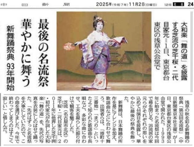 (2024/10/21付 中日新聞 夕刊, 伝統芸能欄 掲載)